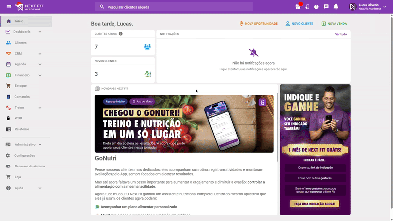 Olá! Neste tutorial você irá aprender como cadastrar um aluno/cliente no Next Fit!