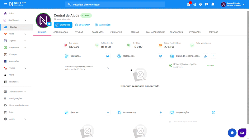Como compartilhar as avaliações físicas? No perfil do cliente, clique no módulo de AVALIAÇÕES FÍSICAS > escolha a avaliação que deseja compartilhar > Clique nos três pontinhos > Compartilhar.