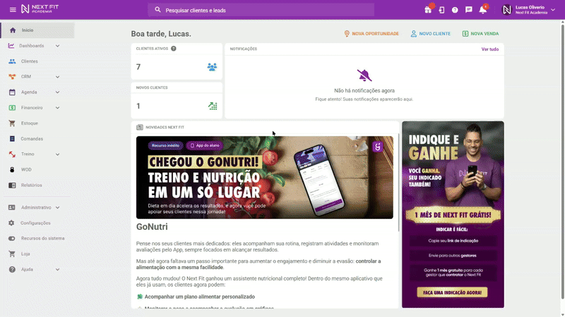 O Next Fit permite o gerenciamento de seus leads, aqueles alunos que ainda não compraram um contrato ou serviço e irão realizar primeiramente uma aula experimental. Dessa forma é possível estar agendando as oportunidades em seus horários.