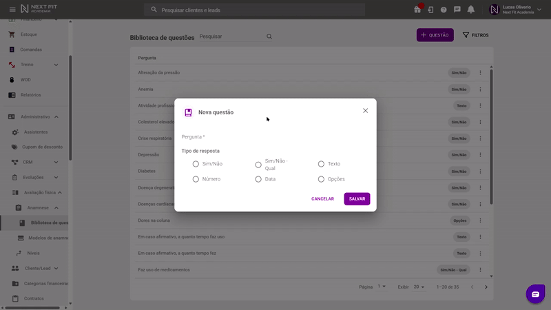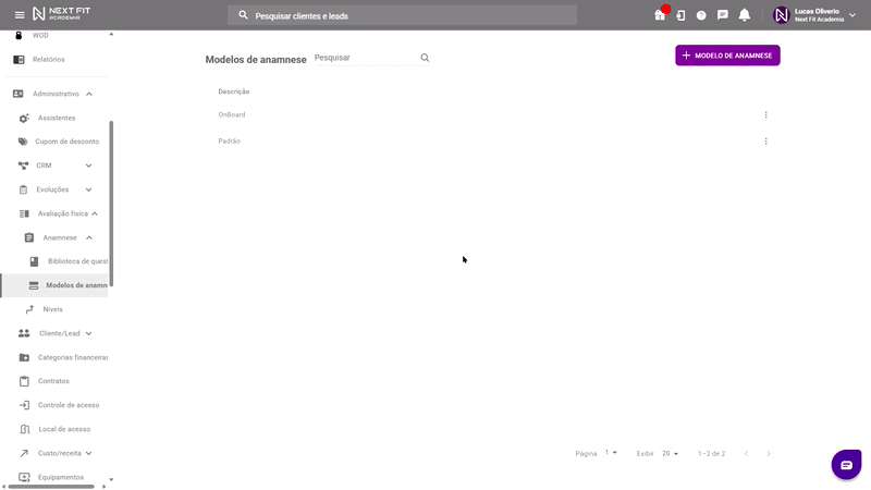 O sistema possui questões e um modelo padrão de anamnese, mas você pode criar suas novas questões e cadastrar um novo modelo de anamnese personalizado, para assim, melhorar a experiência de seus alunos.